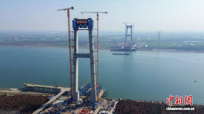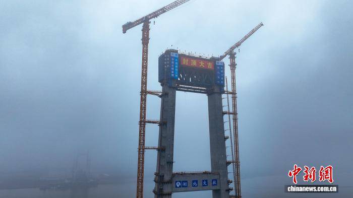 荆州李埠长江公铁大桥双从塔同日封顶